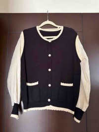 我覺得我索取這件針織外套真的是太對了!穿起來超好看的!細看頗具設計感,配色像棒球外套,領口袖口等處花邊好可愛,我很喜歡!您眼光超讚的,衣服都好美!感謝您!^^