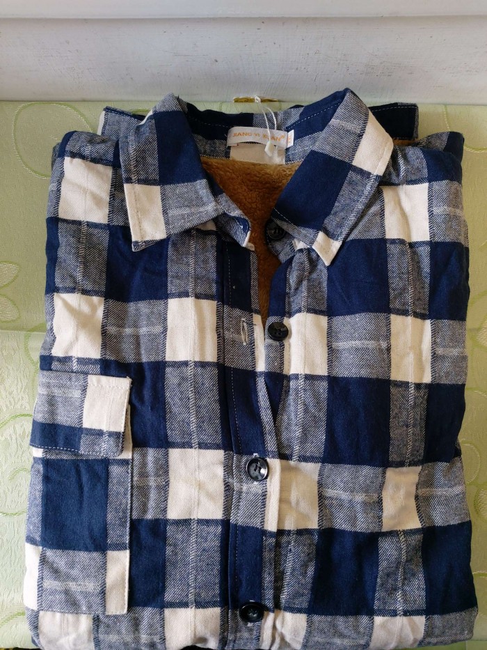 藍色方格外套長83寬50肩寬41