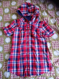 紅色格紋連帽上衣肩寬38胸寬44衣長67cm