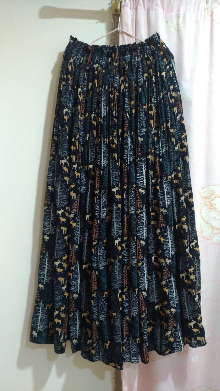 深藍色森林麋鹿圖案長裙腰寬28裙長83cm