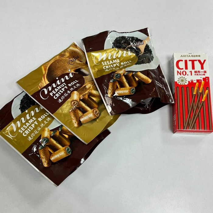 巧克力棒狀餅乾、愛加迷你脆皮捲(花生、芝麻)