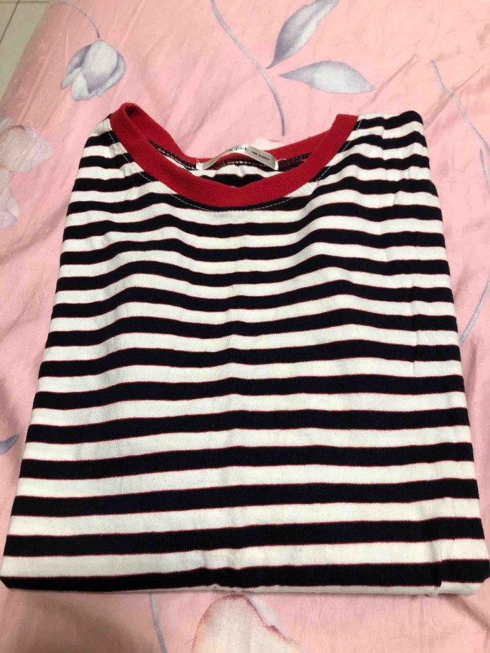 白色黑橫桃紋上衣肩寬42胸寬45衣長59cm
