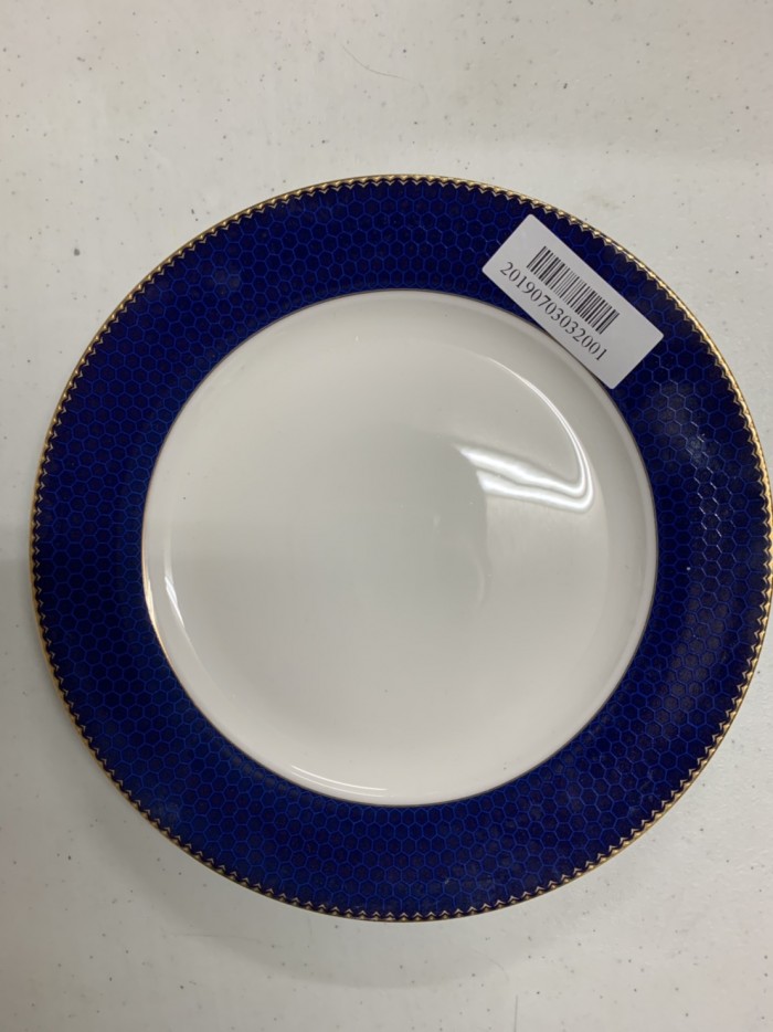 白色底藍邊瓦爾那骨瓷平盤直徑20.5