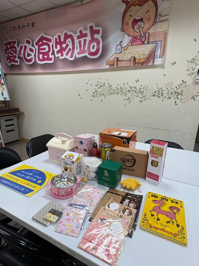 世界和平會預計這些物品,於今年度的兒童戲劇慈善公演活動的活動攤位使用,給需要的民眾愛心義買回家,作為「搶救受飢兒」服務經費。文具品與書籍將於兒少服務活動中使用。非常謝謝您!