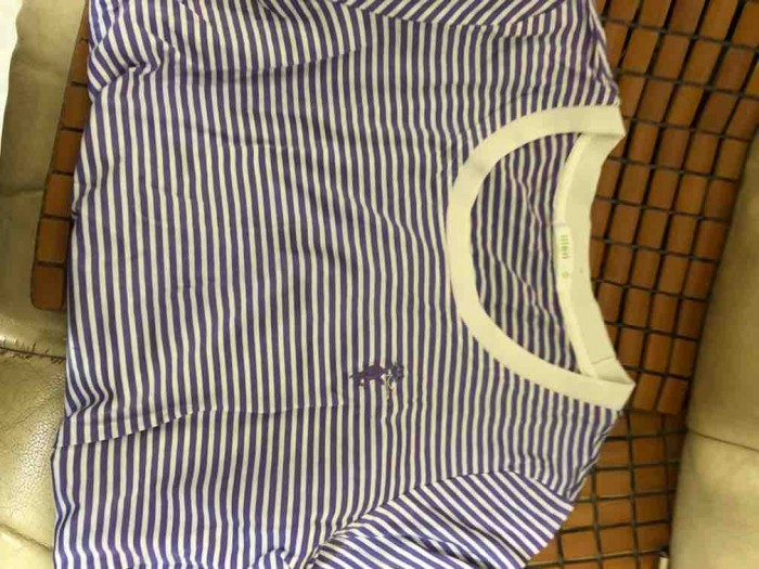 illori金埃及棉紫色條紋圓領上衣寬42肩寬36長57