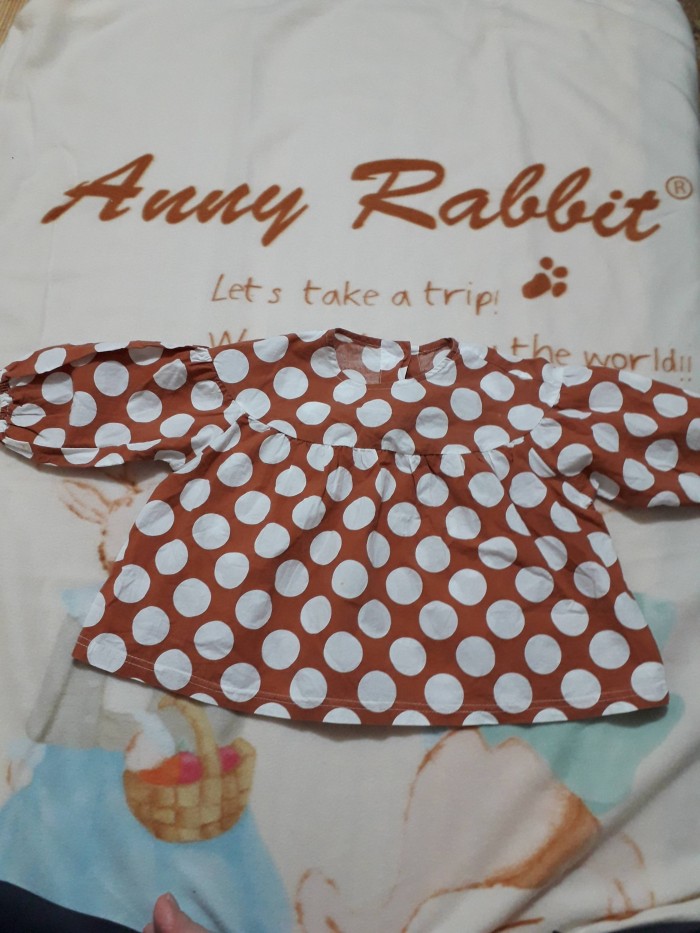 赭色白圓點上衣寬43肩寬37長37