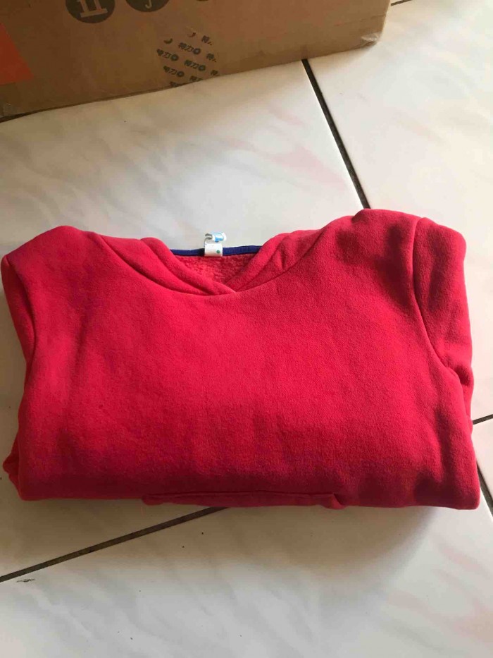 胭脂紅色連帽上衣長44寬37肩寬35