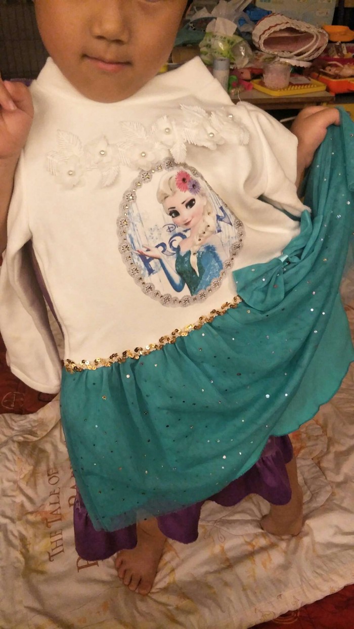 鳧綠色冰雪奇緣洋裝長54寬30肩寬27