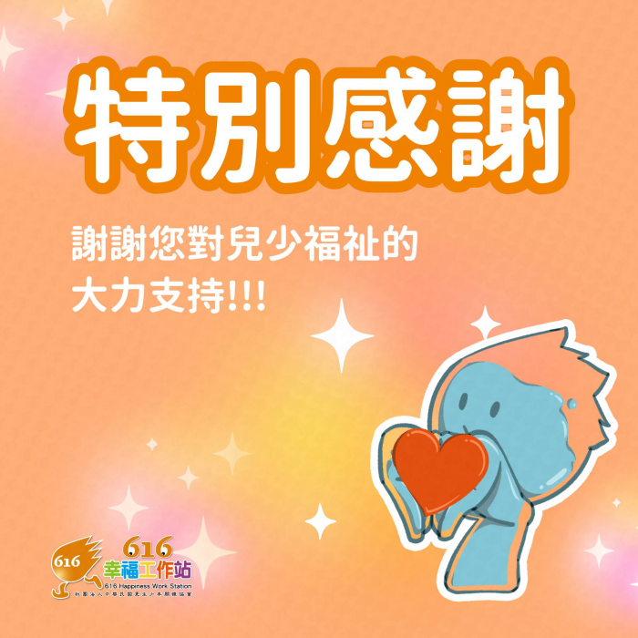 616的服務因為有您的資源投入而更完善、溫暖,謝謝!