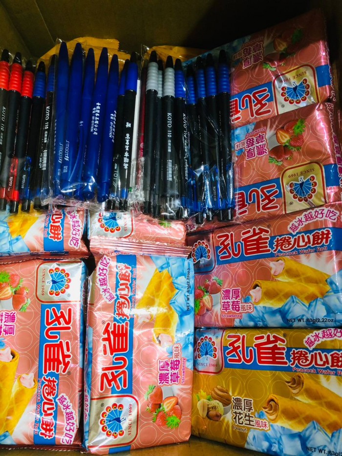 謝謝您慷慨捐贈原子筆、泡麵、餅乾。
