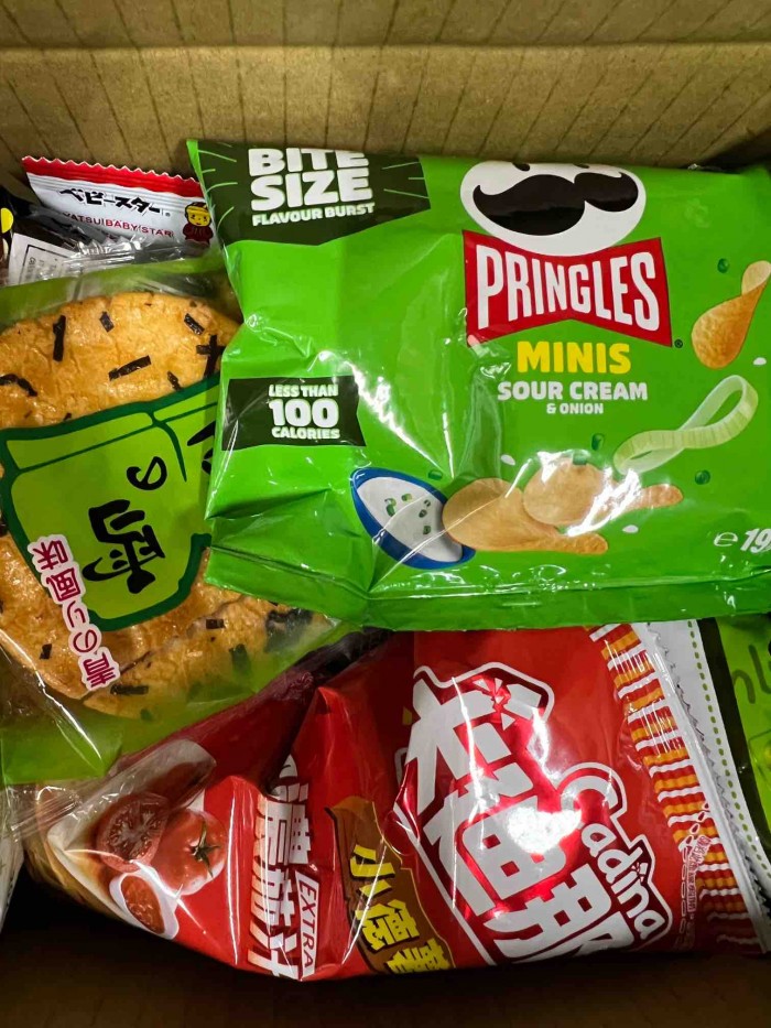 已收到好多好吃的餅乾泡麵,3個孩子們很喜歡
