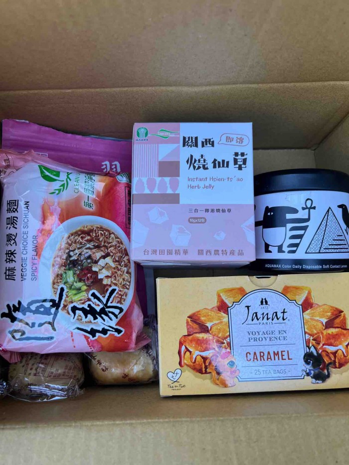 已收到牛奶糖、茶包、月餅 泡麵,女兒看到牛奶糖很開心
