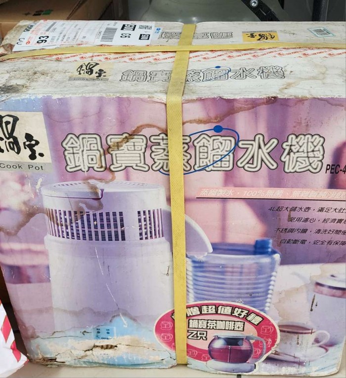塵封已久的蒸餾水機,外盒有點損耗,但內容物是全新的