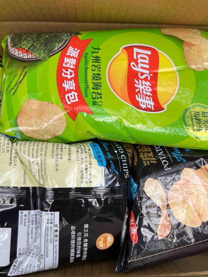 已經收到餅乾零食,洋芋片是孩子們喜歡