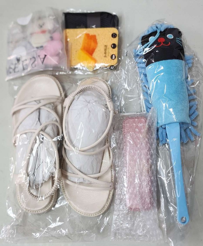 8成新涼鞋、全新鑰匙圈、全新布口罩、全新海綿、全新除塵撢、全新環保餐具