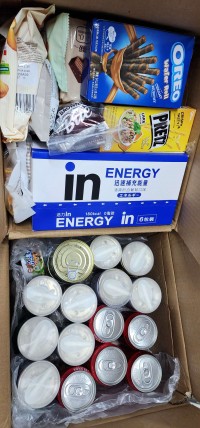 花生豆花、汽水、綠豆仁湯、罐頭、零食等(共2箱)