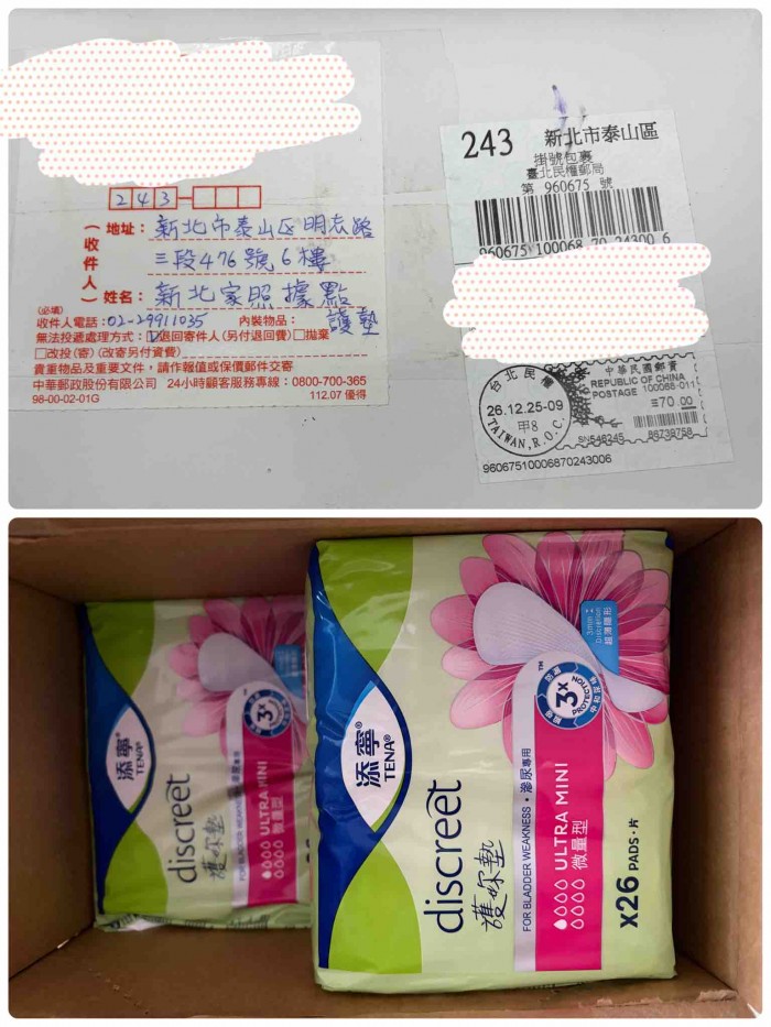 您好~我們收到物資囉;感謝您陪伴家庭照顧者走過一段照顧的路。
