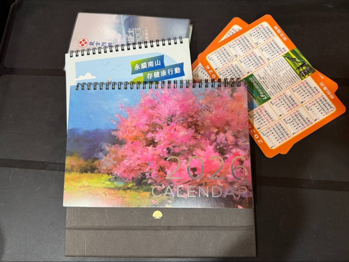 我們今日已收到您寄送的桌曆及筆記本