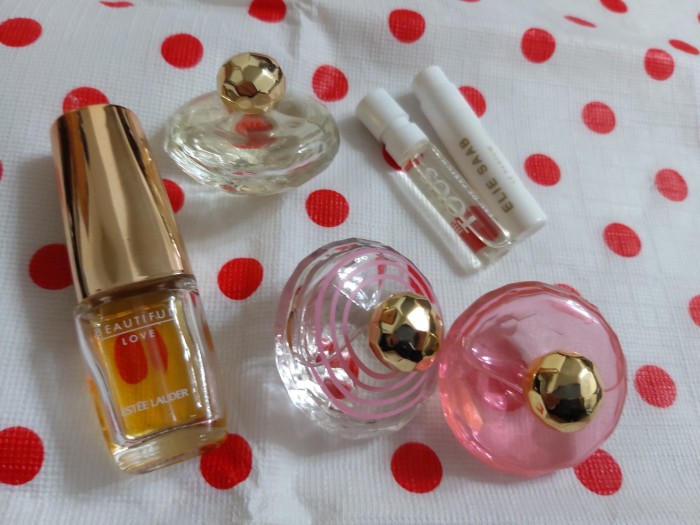 三個小圓瓶的香水,味道是花果香偏甜,只有試聞,幾乎沒用過。
