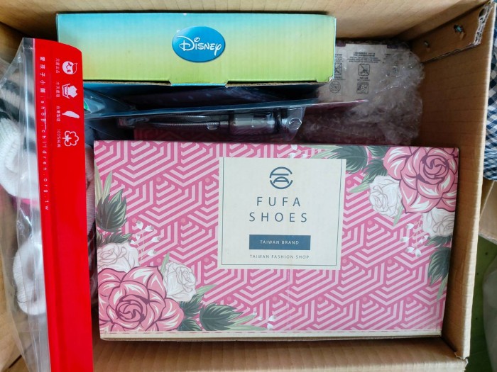 2雙鞋+2個毛帽+1沙灘夾腳拖+1杯子+1盤子+布口罩套3入+1個USB時鐘風扇
