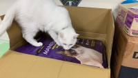 貓乾糧,目前吃民眾捐贈之好市多或皇家乾飼料