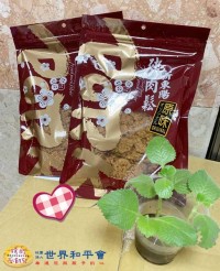 yutilin 午安~~謝謝您分享的二包新東陽原味肉鬆,世界和平會將於這禮拜與其他的生活物資、一起轉贈給二戶服務的家庭,讓孩子可以搭配白飯、麵條或是吐司食用、飽餐一頓,再次謝謝 yutilin 的愛心與對小朋友們的關懷!謝謝您 :D