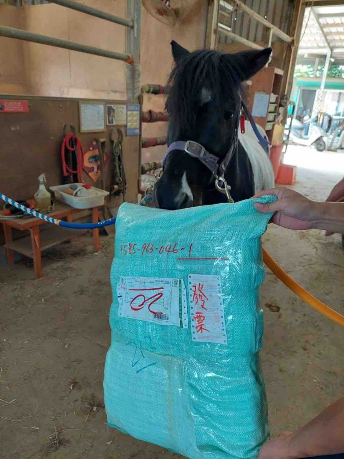 陳先生 您好!今天已收到您寄來的物資,感謝您的支持與愛心,幫助馬場在照顧馬匹上盡一份心力,馬匹代表奧迪謝謝您!