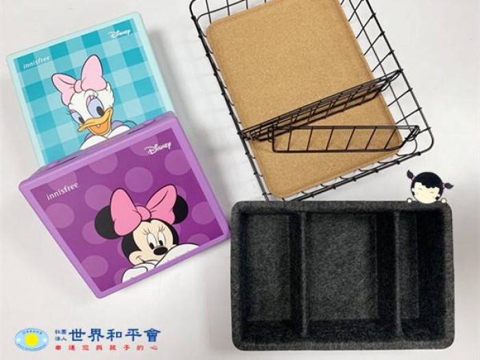 胡小姐早安~謝謝您的愛心收納用品分享~我們已經收到囉~可愛的卡通明星收納盒我們將用於課輔活動或是兒童節、與要給孩子的獎勵品一起裝盒贈給服務的小朋友,以資鼓勵!收納盒我們將用於世界和平會桃園分會的兒少中心,作為服務會館的文具用品歸納整理使用,再次謝謝您的愛心~~