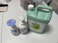 兩罐洗淨晾乾的洗手慕斯空瓶+洗手慕斯加侖桶3800ml補充(補充和空瓶都不是相同的牌子)。