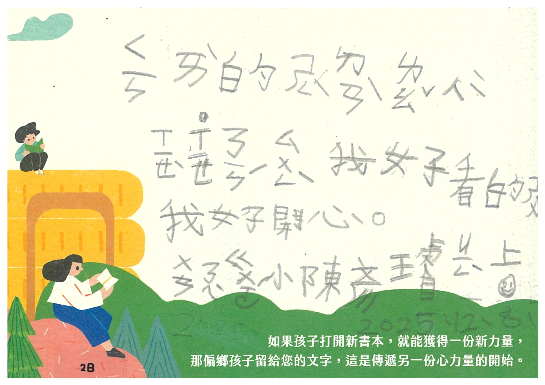 林阿梅 您好:是否已收到孩子寫給您的感謝卡片及我們小小心意的禮物:)