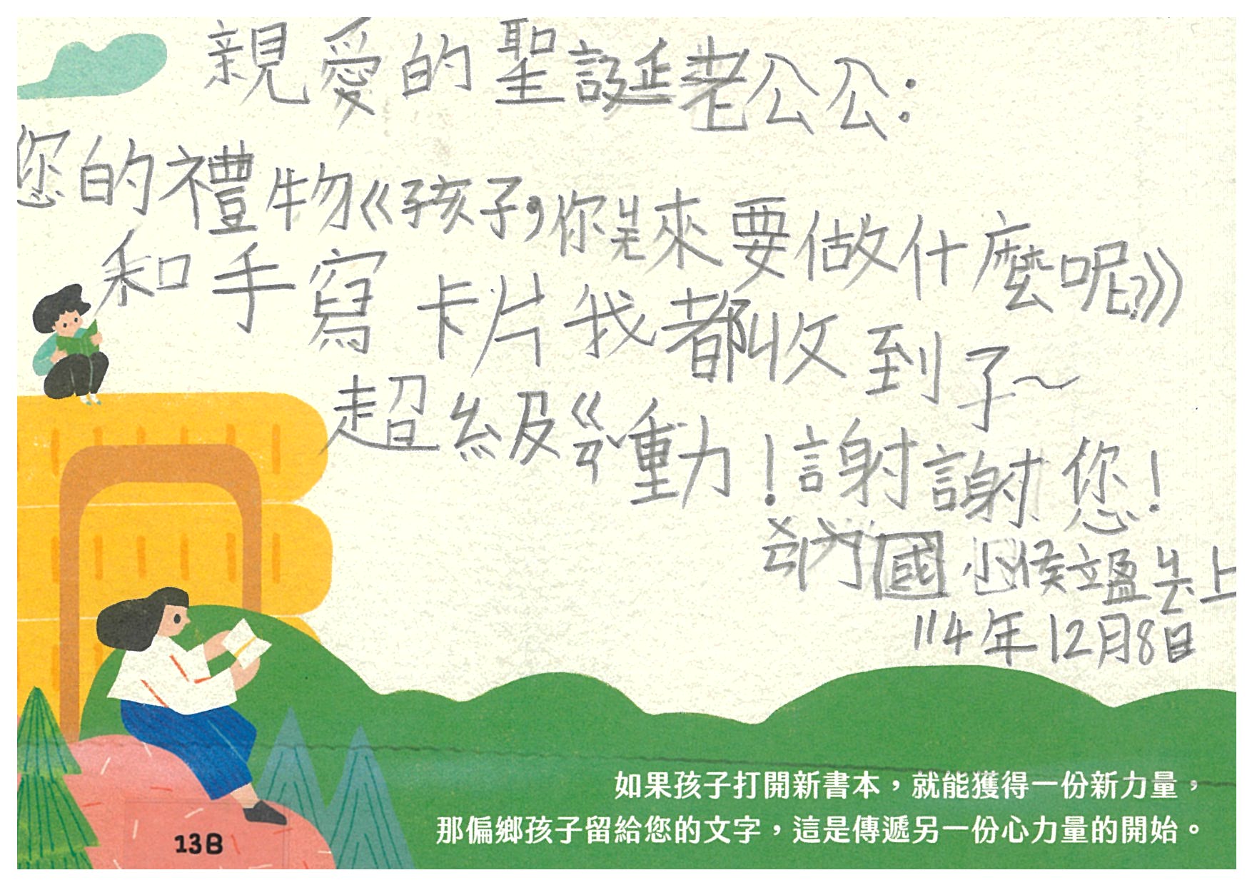 ✪ 11/2(日)後認養的愛閱書籍,請最晚於11/10(一)寄出禮物,以郵戳為憑,逾期之禮物將作為隔年的聖誕禮物物資