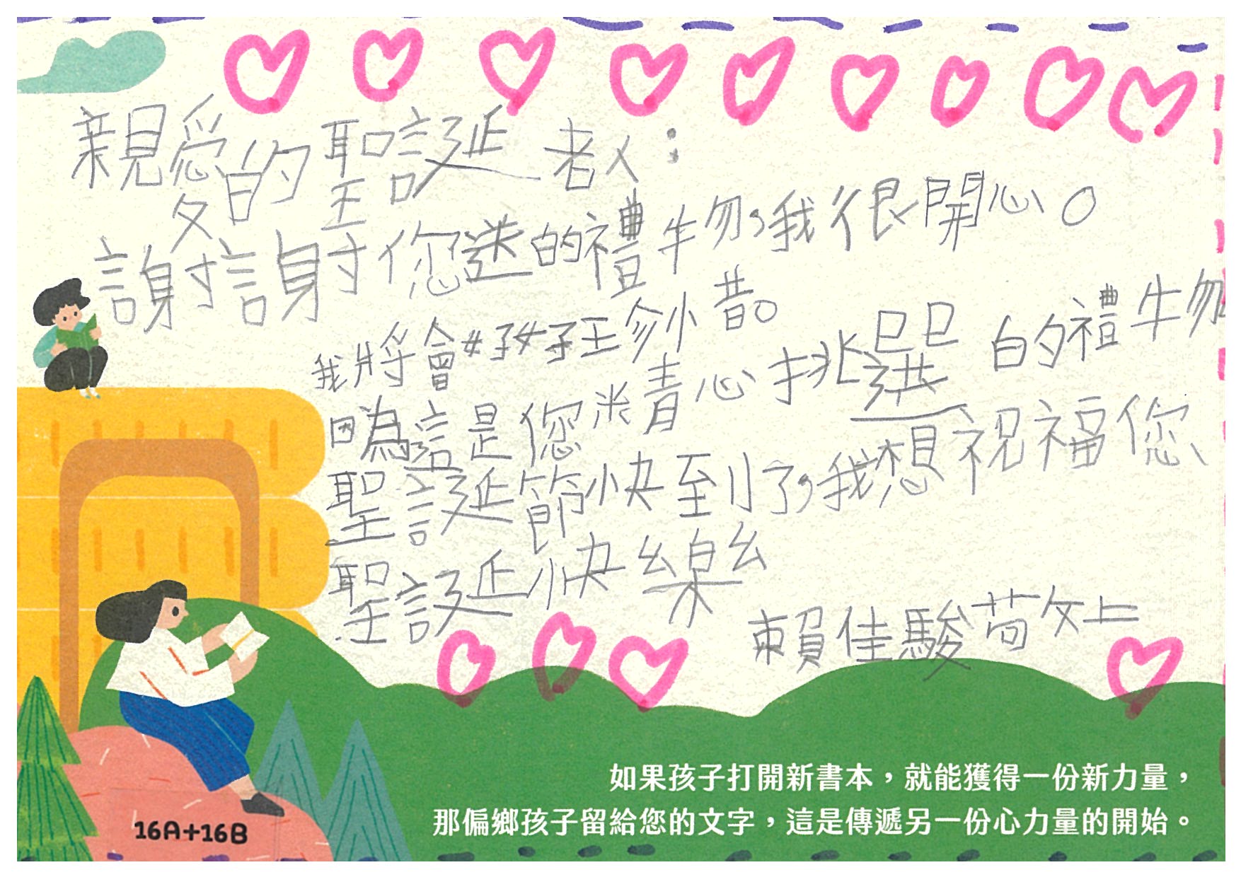 yuuyuu:收到您精心準備的愛閱書籍,以小卡片+滿滿的禮物,感謝您認養孩子的心願書籍,提升小朋友閱讀的能力。孩子們一定會很開心能擁有屬於自己的書籍^^開心再次看到您~