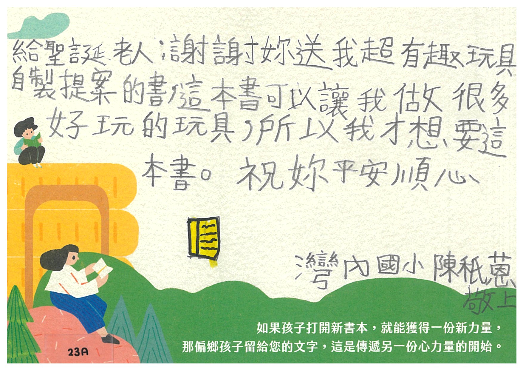 ✪ 11/2(日)後認養的愛閱書籍,請最晚於11/10(一)寄出禮物,以郵戳為憑,逾期之禮物將作為隔年的聖誕禮物物資