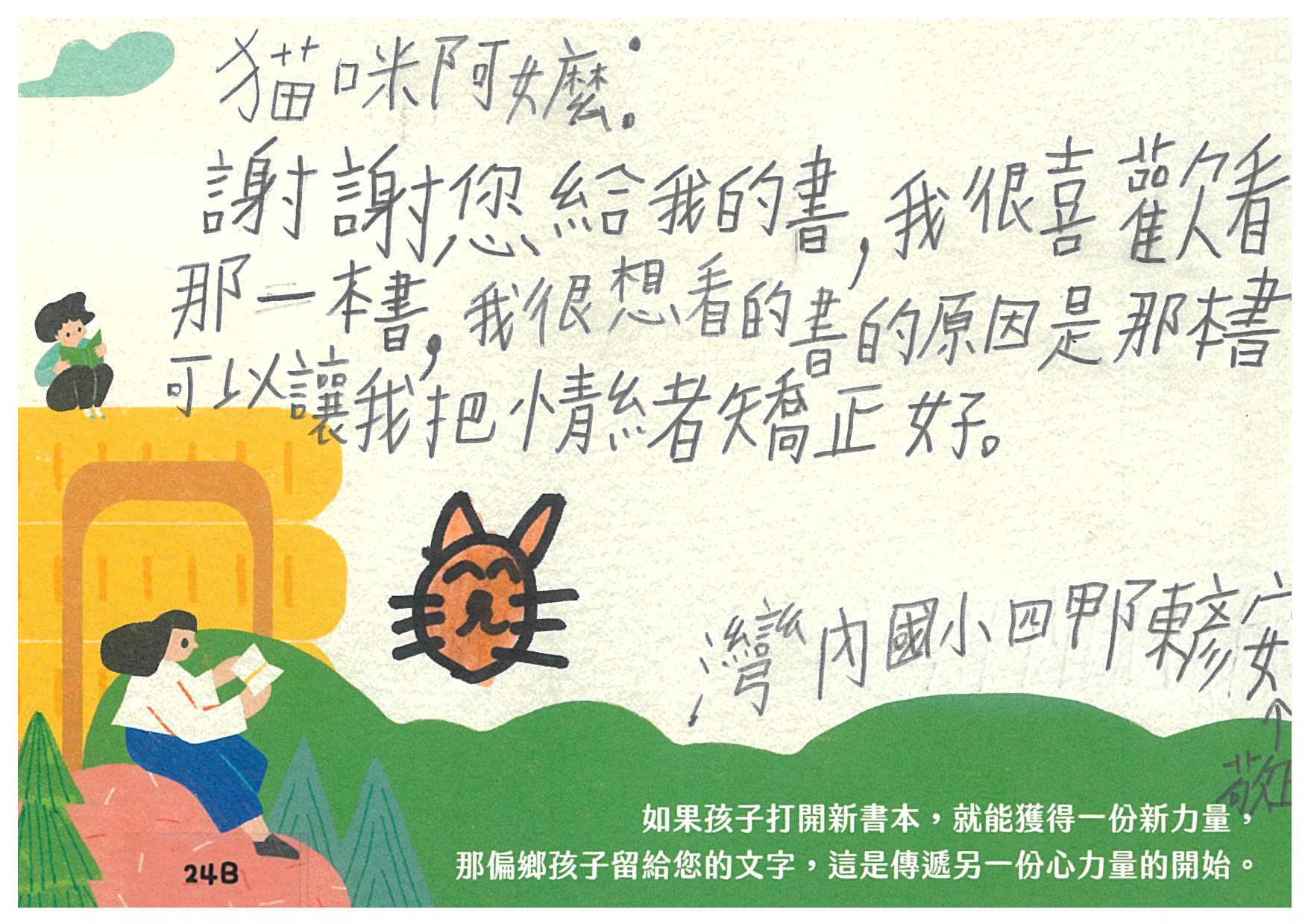 Noir:已收到您精心準備的愛閱書籍,感謝您認養孩子的心願書籍,提升小朋友閱讀的能力。孩子們一定會很開心能擁有屬於自己的書籍^^開心再次看到您~謝謝您用心的寫下祝福卡片給孩子。
