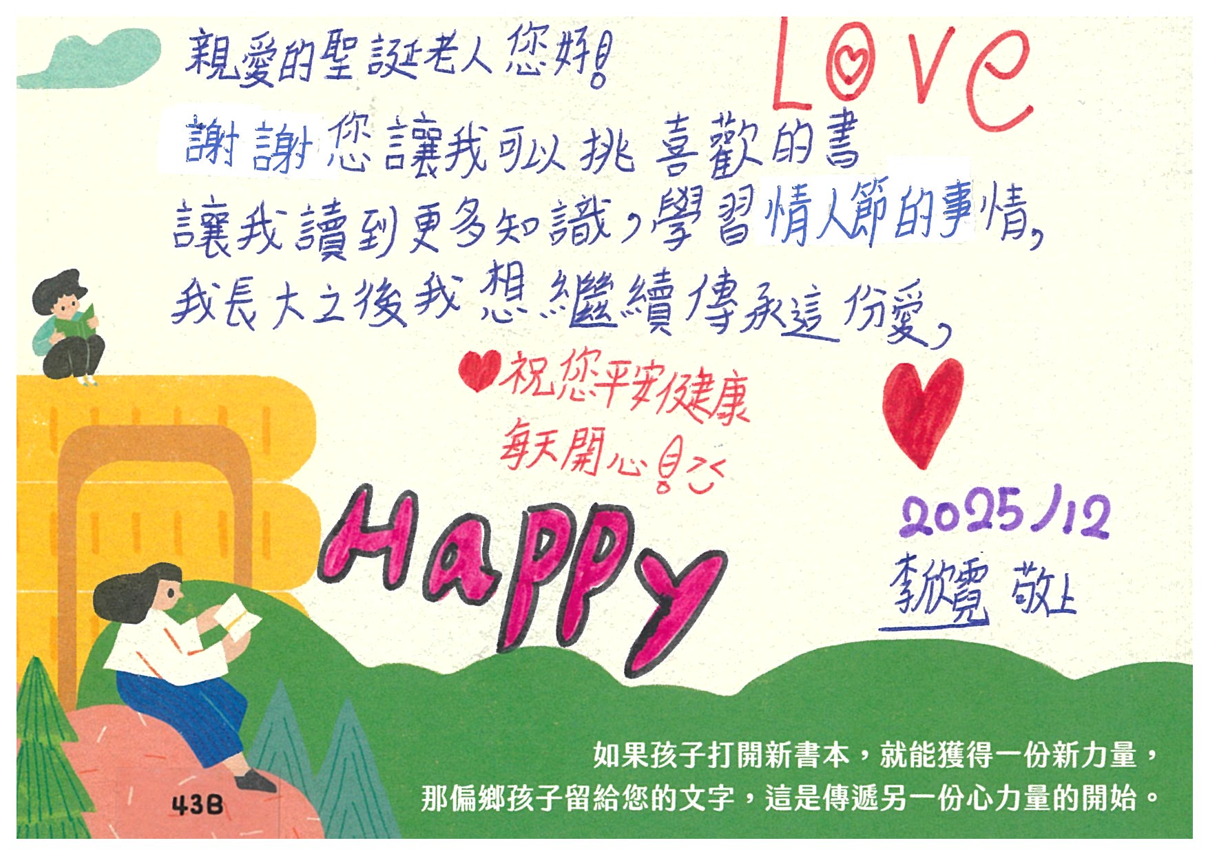 Ting1111:收到您精心準備的愛閱書籍,感謝您認養孩子的心願書籍,提升小朋友閱讀的能力。孩子們一定會很開心能擁有屬於自己的書籍^^開心再次看到您~