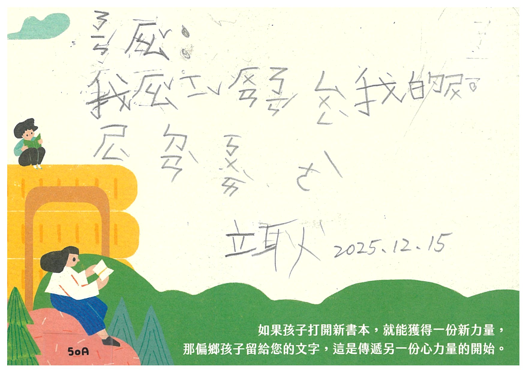 chiamay:已收到您精心準備的愛閱書籍,感謝您認養孩子的心願書籍,提升小朋友閱讀的能力。孩子們一定會很開心能擁有屬於自己的書籍^^開心再次看到您~也謝謝您豐富孩子們的文具用品^^