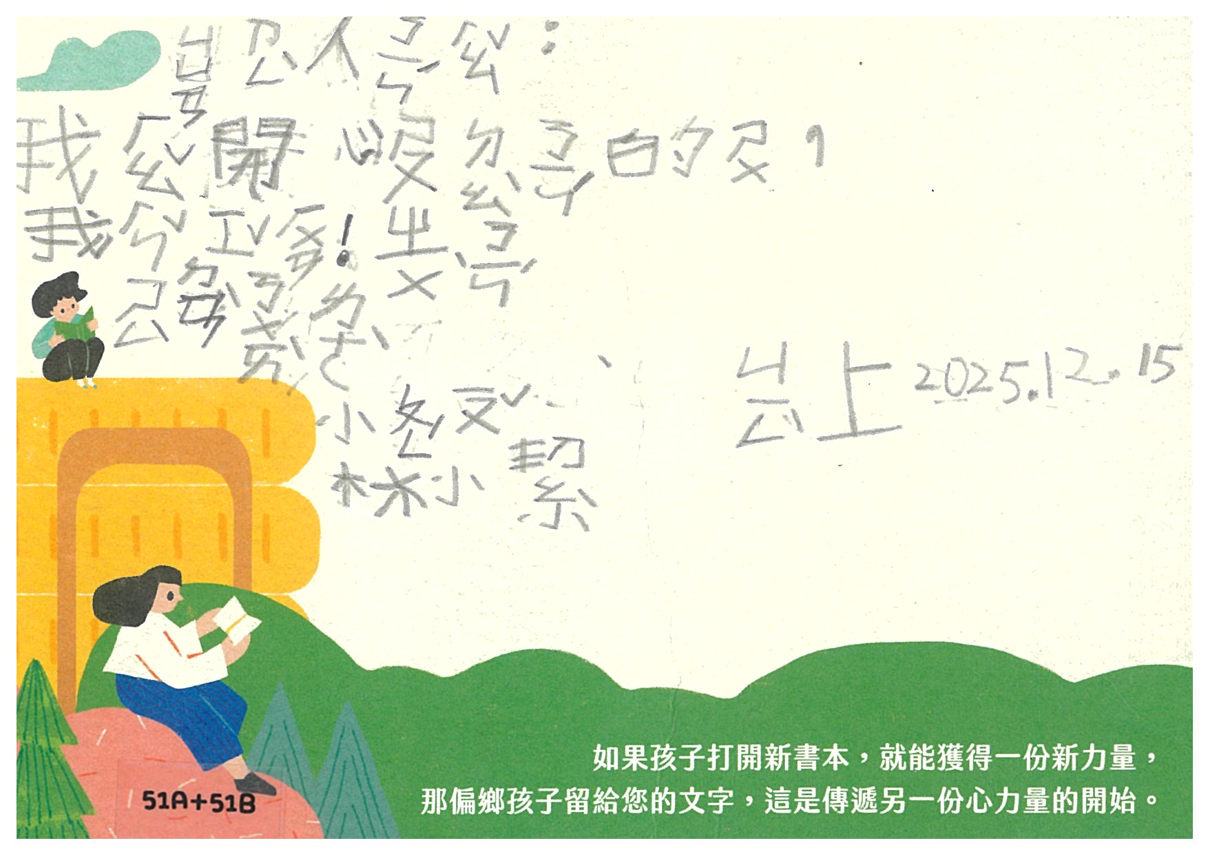 chiamay 您好:是否已收到孩子寫給您的感謝卡片及我們小小心意的禮物:)