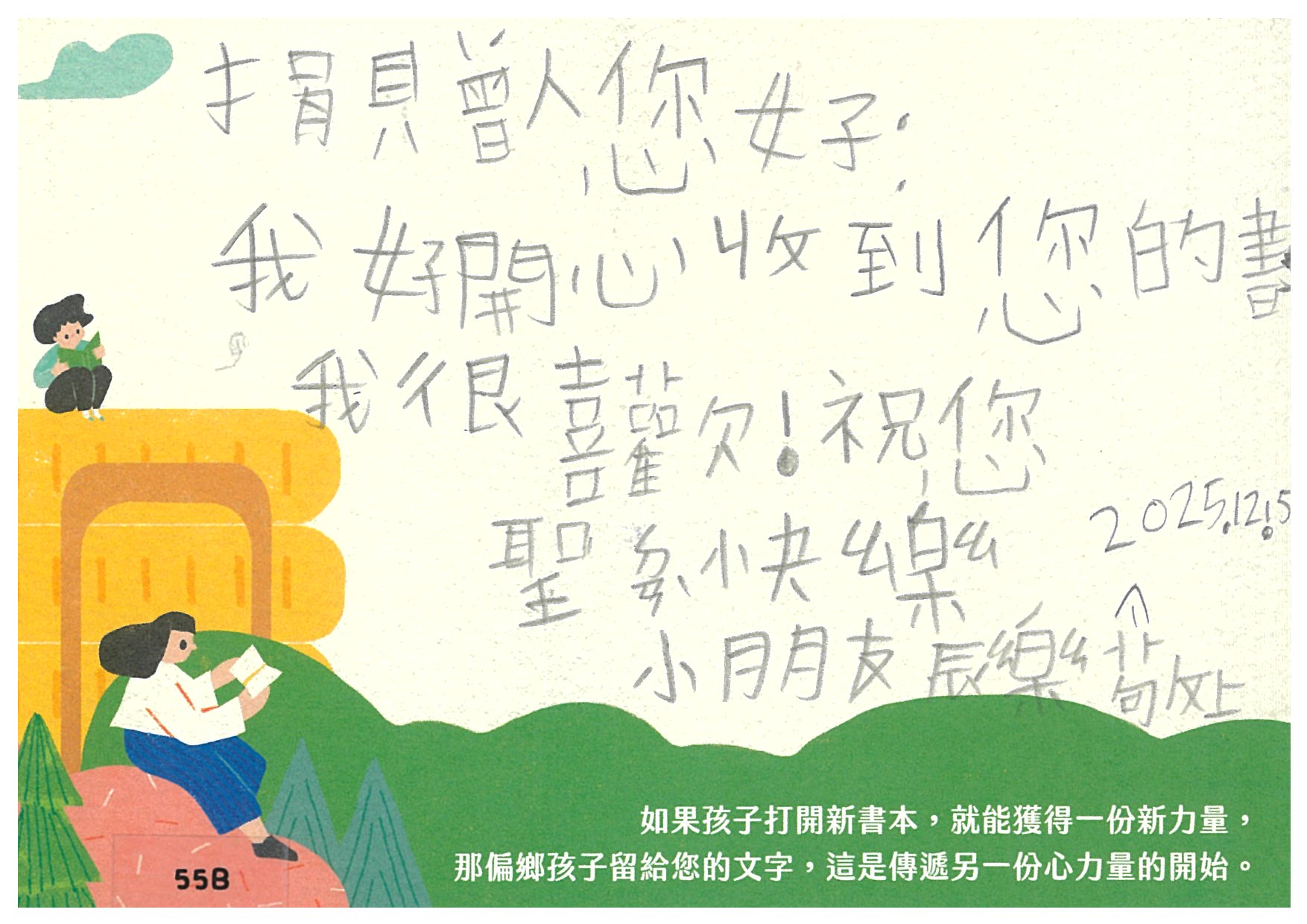 ✪ 11/2(日)後認養的愛閱書籍,請最晚於11/10(一)寄出禮物,以郵戳為憑,逾期之禮物將作為隔年的聖誕禮物物資