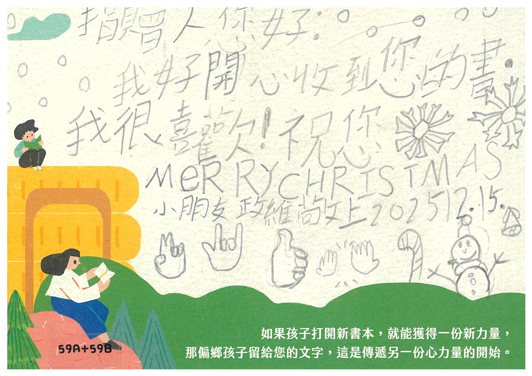 ✪ 11/2(日)後認養的愛閱書籍,請最晚於11/10(一)寄出禮物,以郵戳為憑,逾期之禮物將作為隔年的聖誕禮物物資