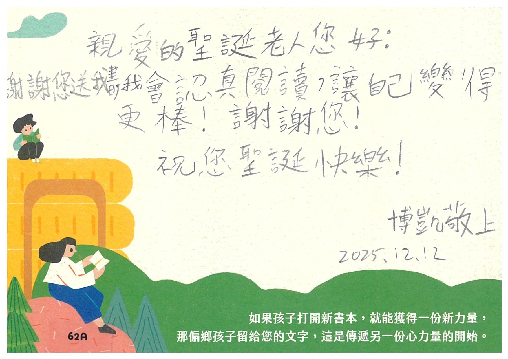 ✪ 11/2(日)後認養的愛閱書籍,請最晚於11/10(一)寄出禮物,以郵戳為憑,逾期之禮物將作為隔年的聖誕禮物物資