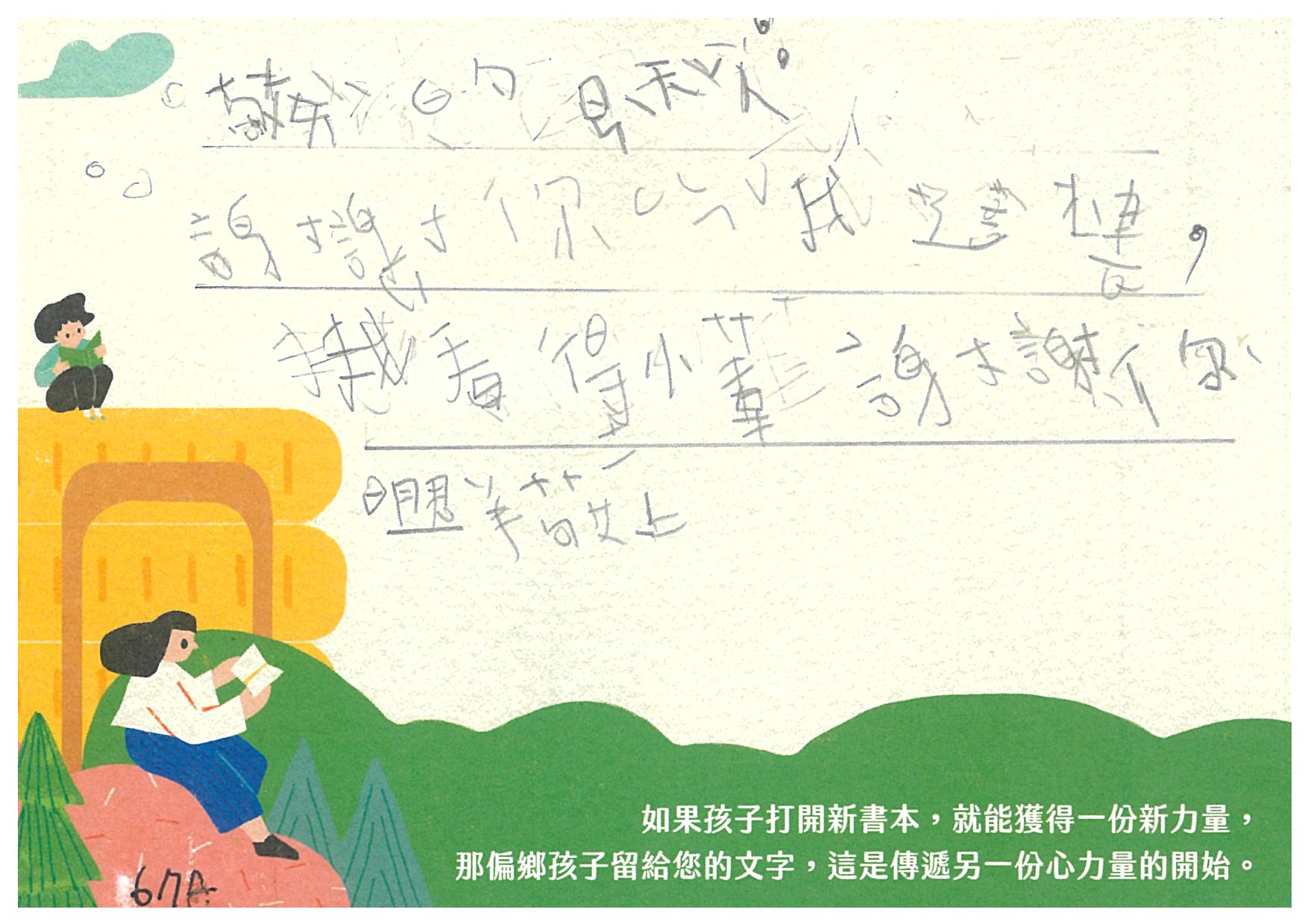 大糖果 您好:是否已收到孩子寫給您的感謝卡片及我們小小心意的禮物:)