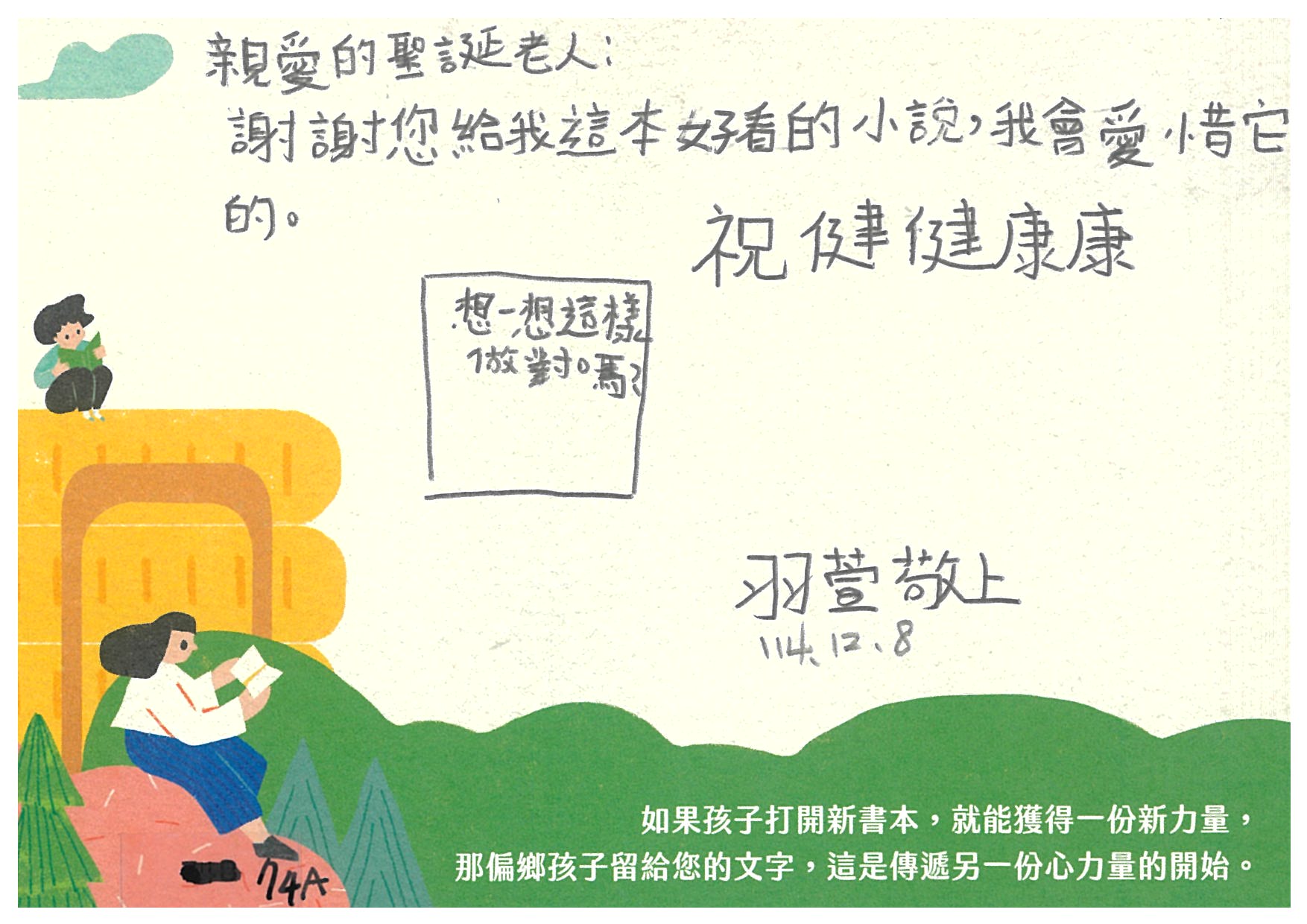 沙華 您好:是否已收到孩子寫給您的感謝卡片及我們小小心意的禮物:)