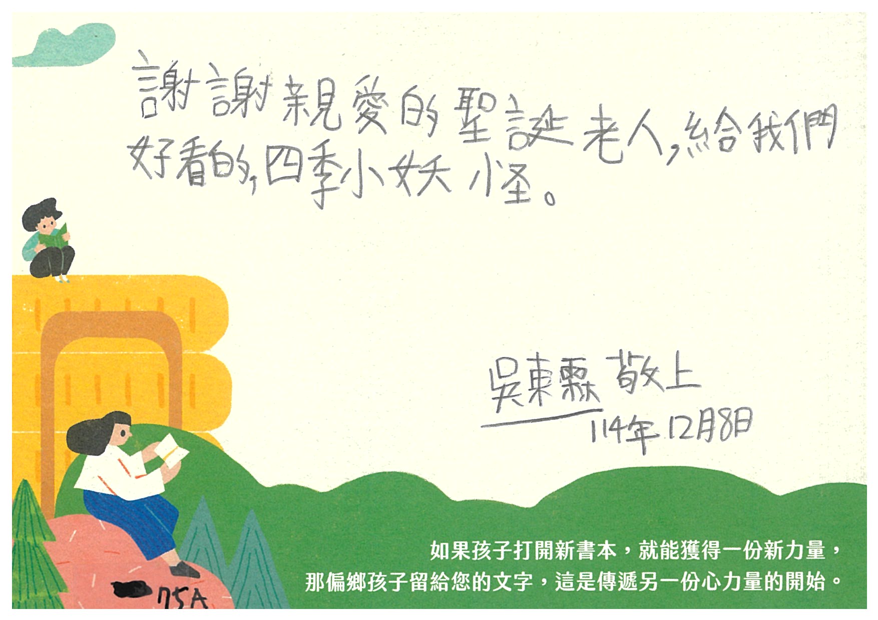 ✪ 11/2(日)後認養的愛閱書籍,請最晚於11/10(一)寄出禮物,以郵戳為憑,逾期之禮物將作為隔年的聖誕禮物物資