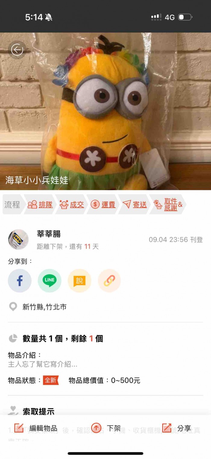 建議您若有想要分享的物品,可先以"面交"方式進行。