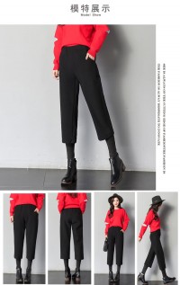 韓版加絨保暖假兩件毛呢鬆緊腰頭修身休閒褲