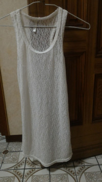 這件蕾絲背心可以搭配素面上衣或洋裝,很好看,有加分~謝謝您~