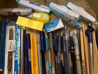 ,有:立可帶、自動鉛筆、鉛筆、原子筆、多功能筆、代針筆…等。文具的狀況都很好,自動鉛筆都好壓、好寫,原子筆的墨水量都充足、寫起來很順、不會斷水