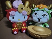收到您超讚的禮物了喔~一隻是龍年造型有夠可愛的好想兔搭配可開蓋裝寶物的金元寶收納盒,另一隻是龍年造型抱著招財金幣的Hello kitty, 兩個有夠漂亮的存錢筒,真的好喜愛呀!實在太榮幸也太感激您願意送給我喔~也祝褔您平安健康順心喜樂喔~