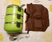 您好:已收到三層隔熱便當盒,是翠玉的顏色,非常柔和,家人都很喜歡,還附贈提袋和餐具(湯匙和筷子),外出攜帶,非常便利,能獲贈,超開心的,感謝您的愛心分享,非常謝謝您,感恩您。