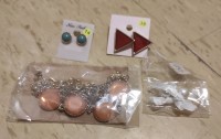 謝謝妳贈送這麼多漂亮飾品,在百忙之中還回應我下架物品的索取。綠色耳環的顏色好美;原來小珍珠耳環有2對,我現在已經戴著一對,另外一對我會試試換掉小緞帶,換成毛線小飾品。